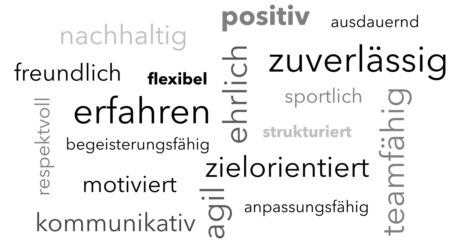 Neben dem fachlichen Know-how spielen persönliche und soziale Kompetenzen in der Zusammenarbeit eine sehr wichtige Rolle. Ich bin: